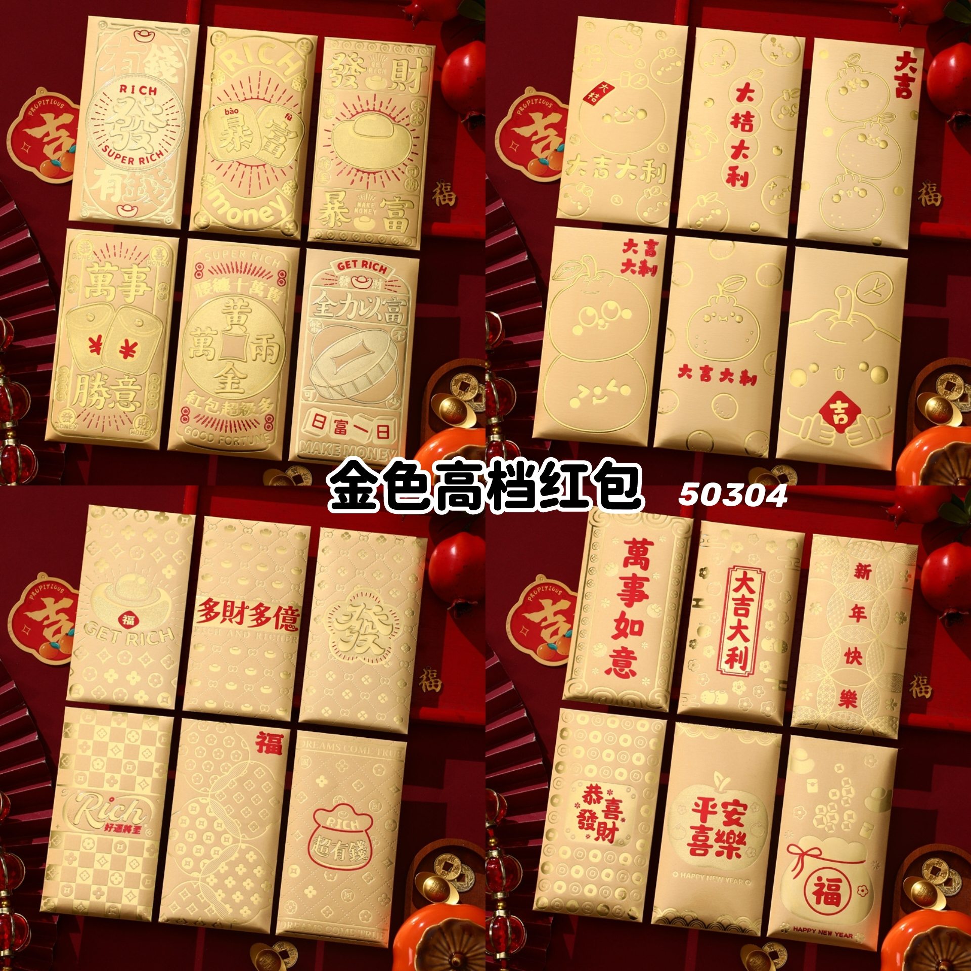 多财多亿, 发财暴富, 大吉大利, 万事如意