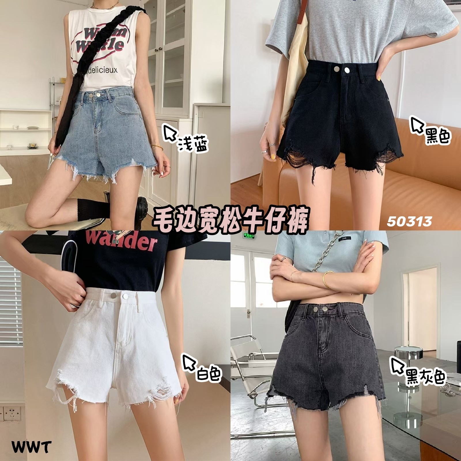 牛仔短裤永远不会过时而且最好搭配😎,最喜欢这种流苏边的设计穿着蛮飒的🤣,显瘦修身,高腰款~