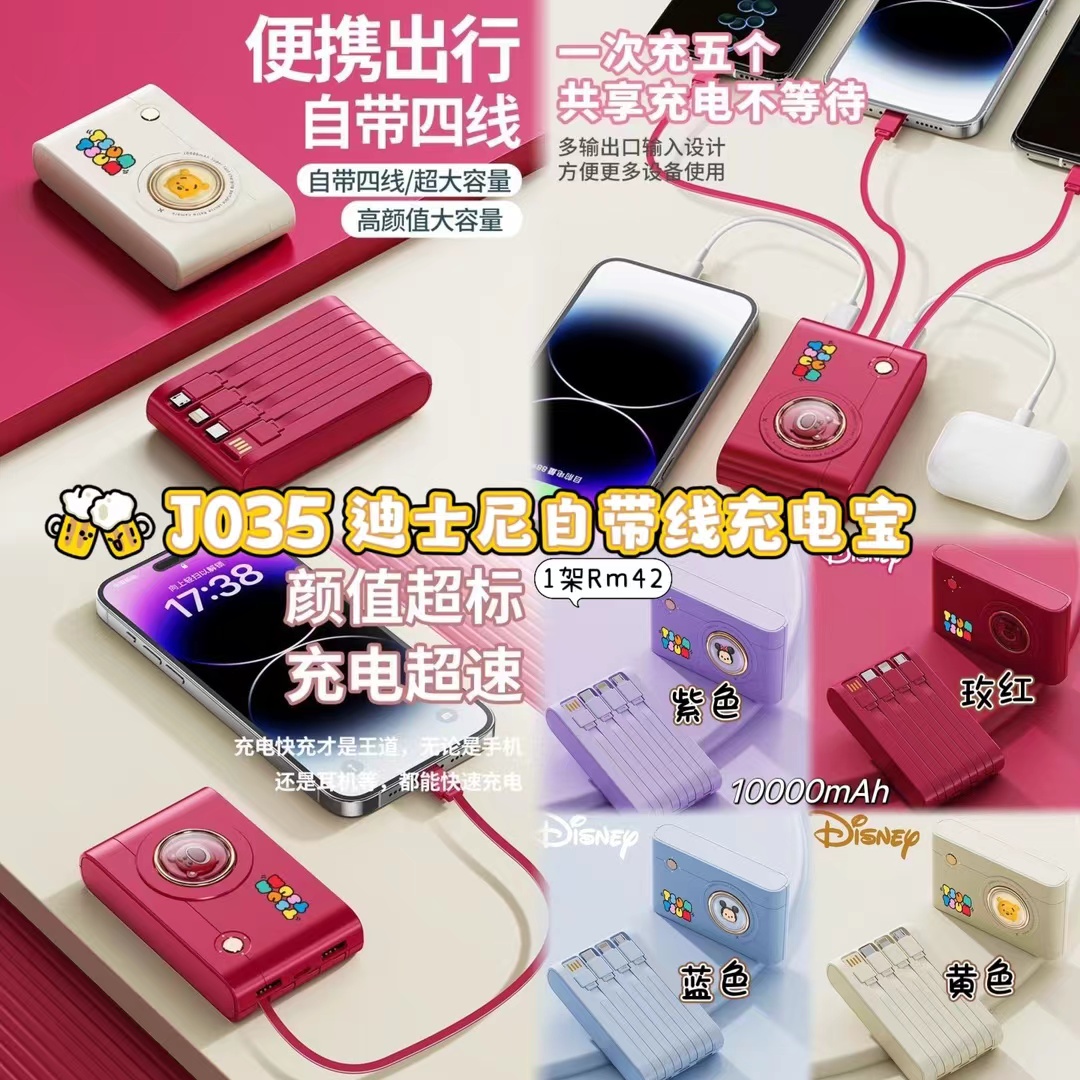 ZA超值团购19/6-30/6🛒 J035 迪士尼自带线充电宝 💰Rm42(10000mAh)