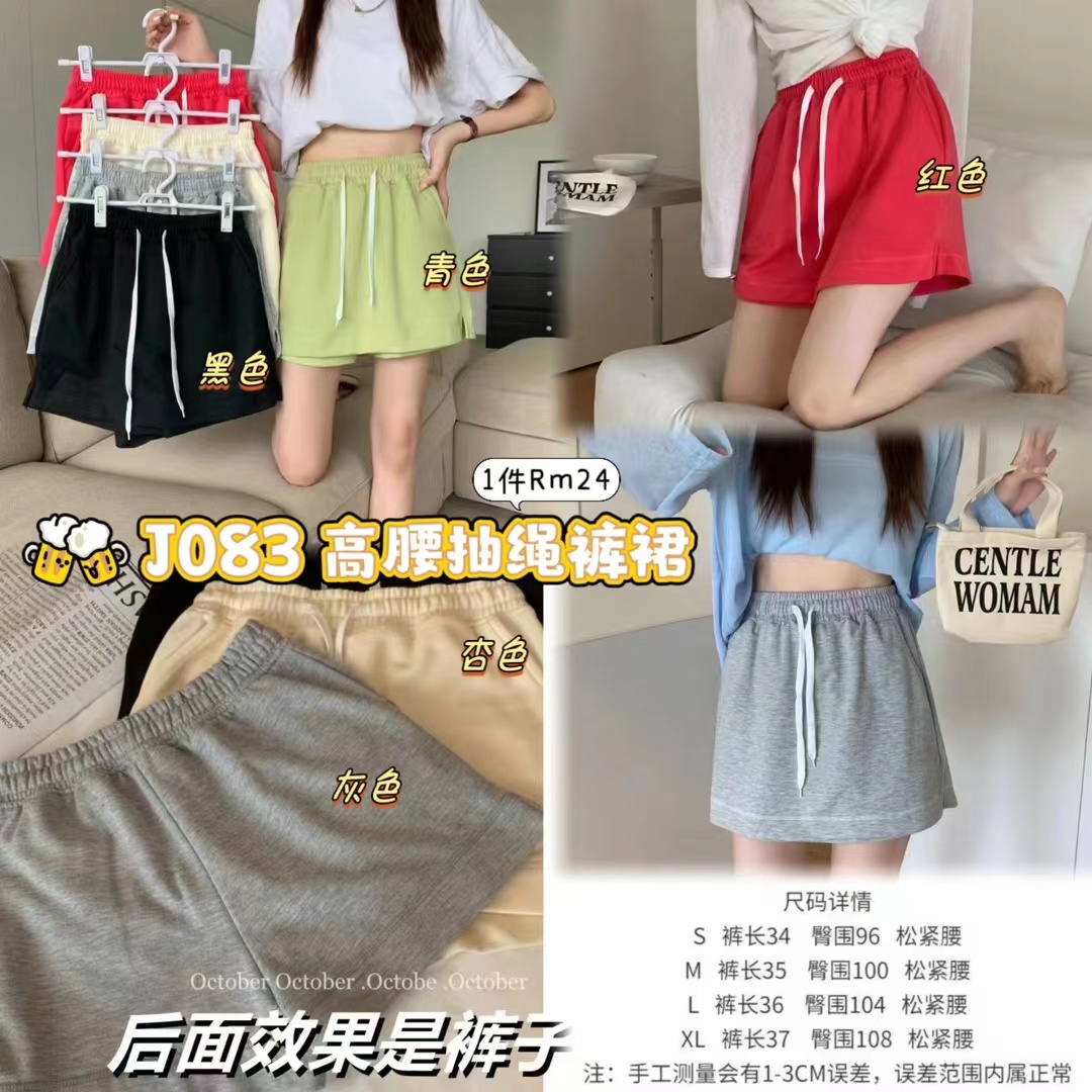 J083 高腰抽绳裤裙