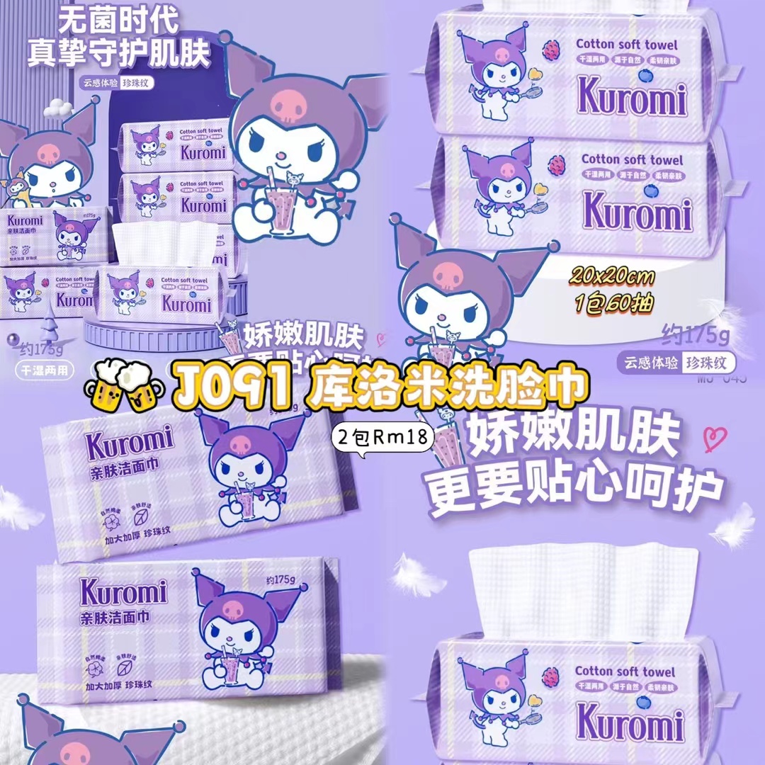 库洛米洗脸巾,加大加厚珍珠纹 一包60抽✨