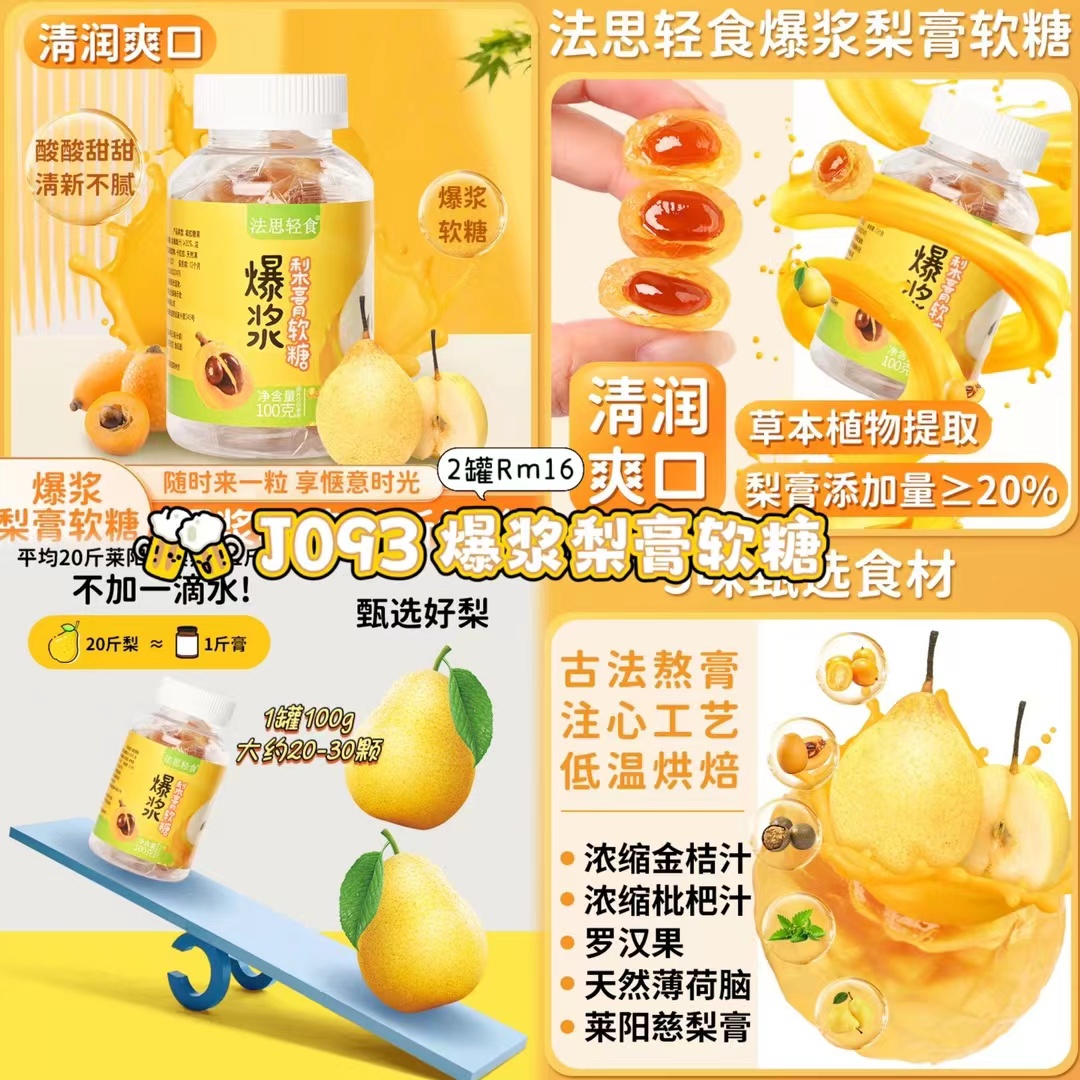 ZA超值团购19/6-30/6🛒 J093 爆浆梨膏软糖 💰Rm16(2罐)