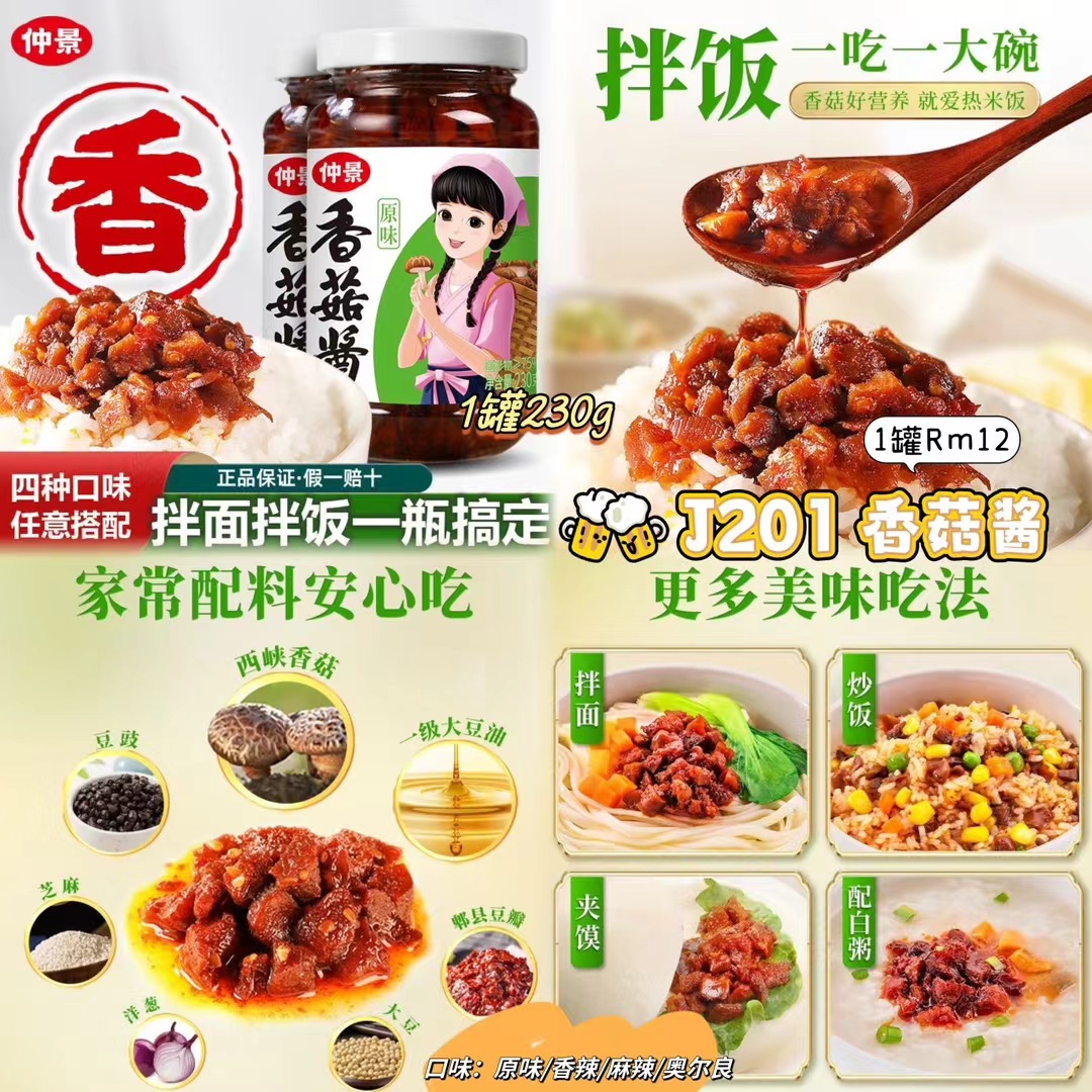ZA超值团购19/6-30/6🛒 J201 香菇酱 💰Rm12(1罐230g)