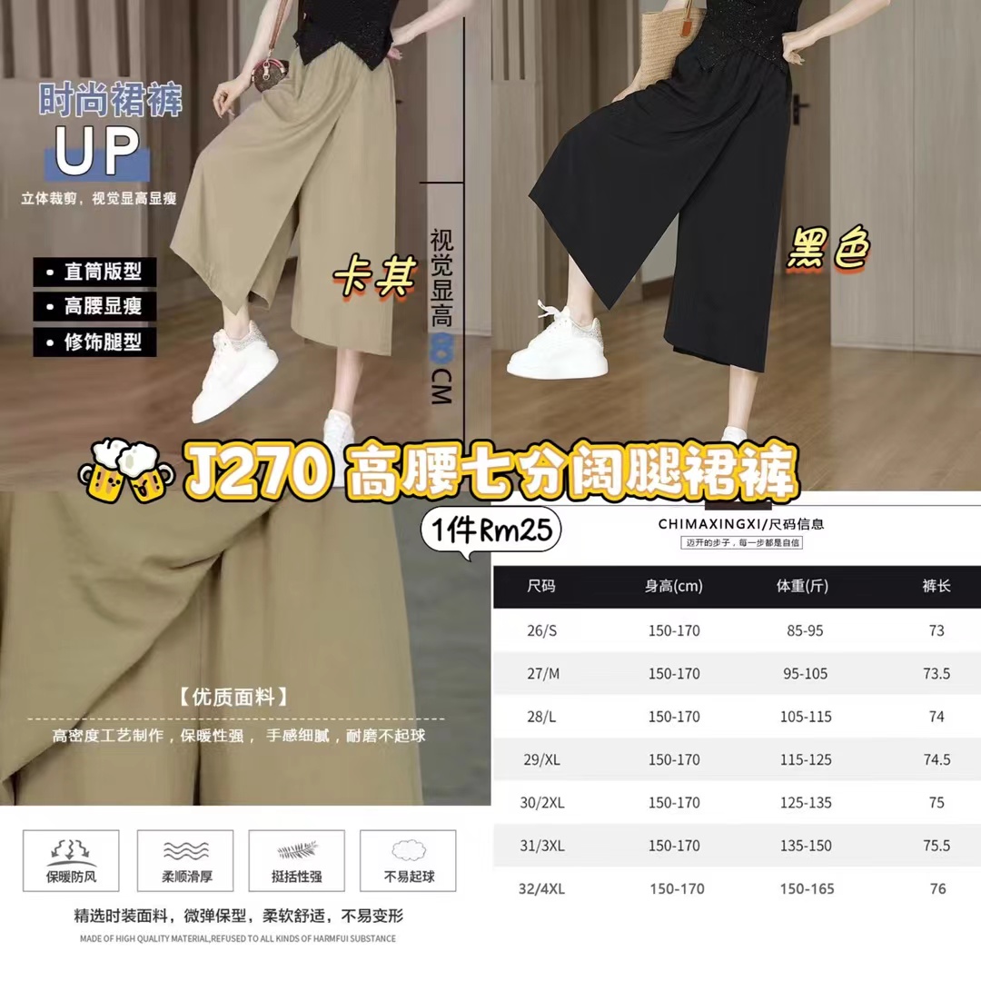 ZA超值团购19/6-30/6🛒 J270 高腰七分阔腿裙裤 💰Rm25(1件)
