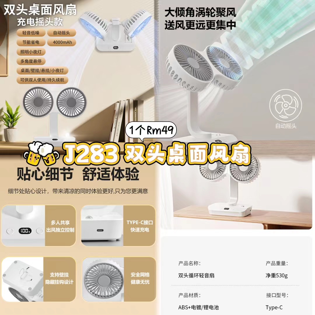 ZA超值团购19/6-30/6🛒 J283 双头桌面风扇 💰Rm49