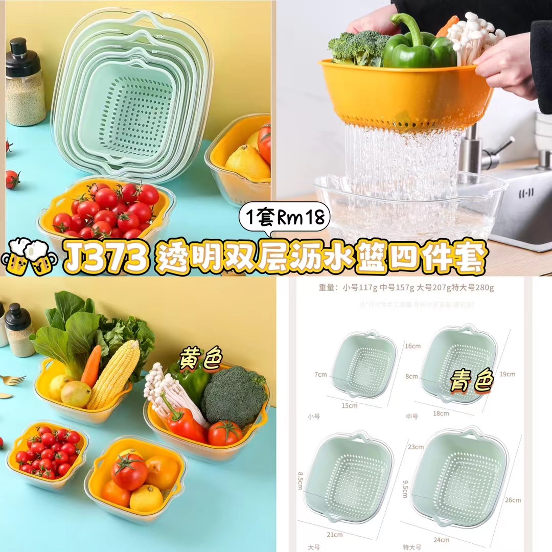 ZA超值团购19/6-30/6🛒 J373 透明双层沥水篮四件套 💰Rm18(1套)