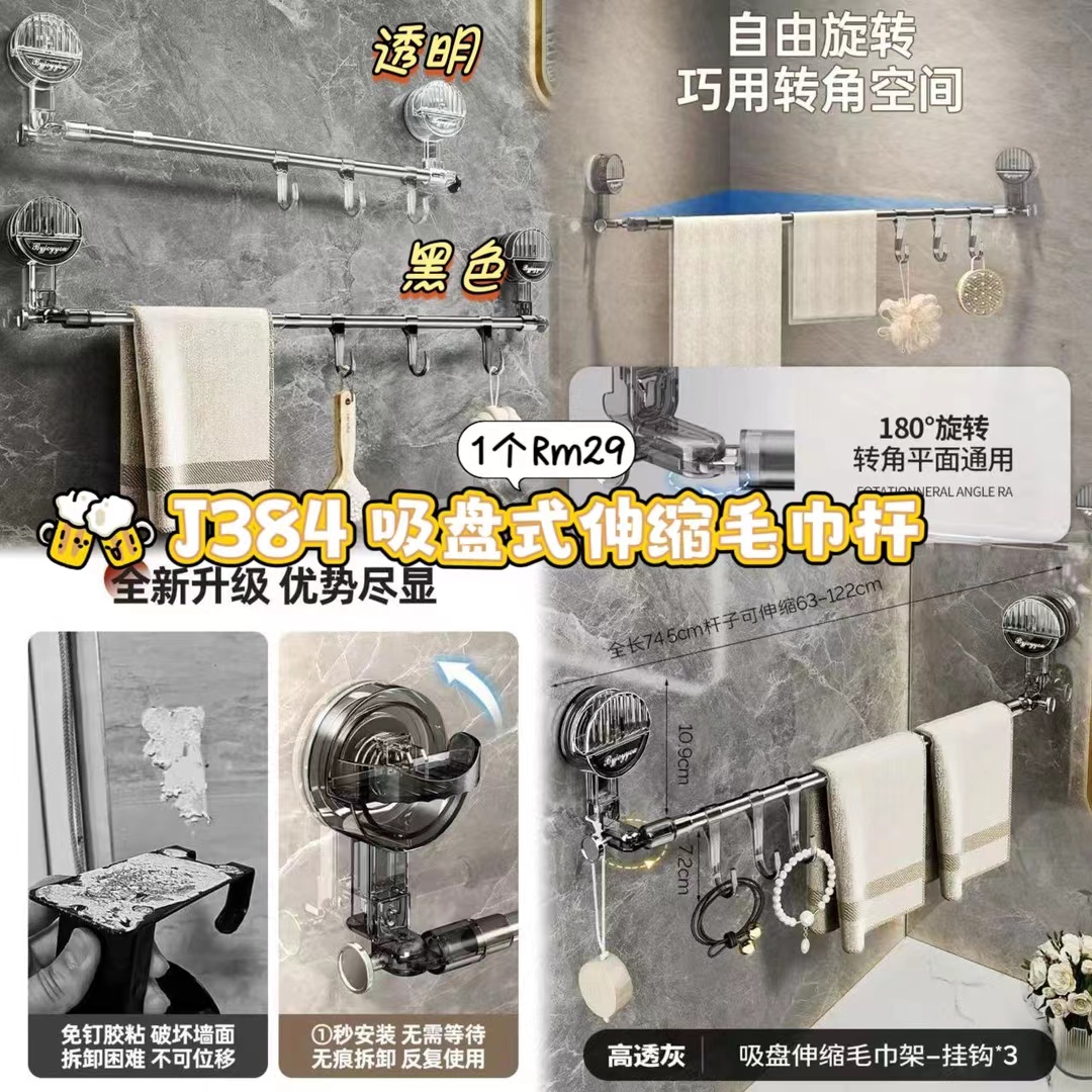 / J384 吸盘式伸缩毛巾杆