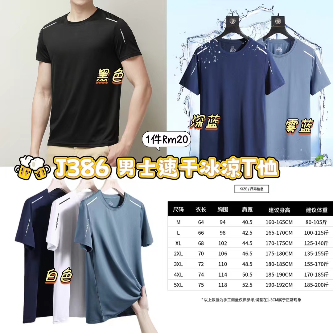 ZA超值团购19/6-30/6🛒 J386 男士速干冰凉T恤 💰Rm20(1件)