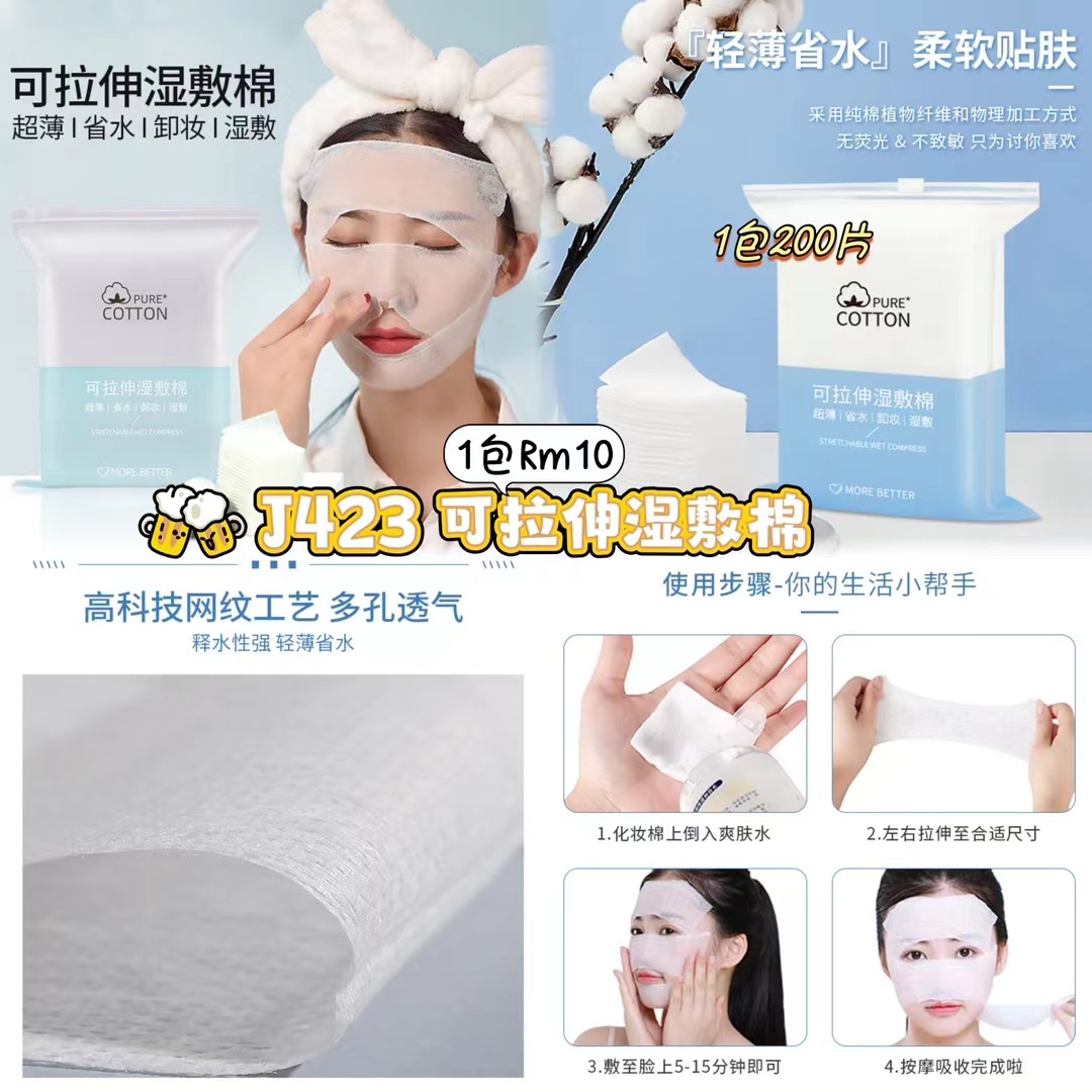 ZA超值团购19/6-30/6🛒 J423 可拉伸湿敷棉 💰Rm10(1包200片)