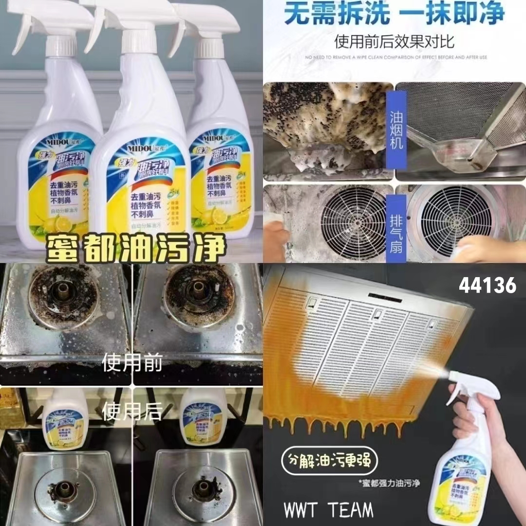 蜜都的油污净,分解油污能力很强👍,油烟机、厨具、煤气灶都能用,不需要拆洗,一抹就干净了‼️‼️,一支500ml