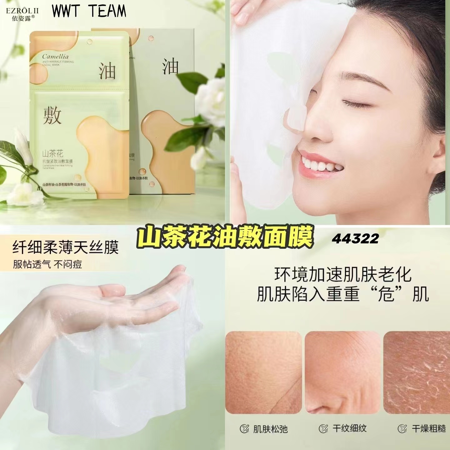 博主种草推荐面膜💯,成分有山茶籽油、月见草根提取物,不但补水效果一流,还能紧致抗皱,建议一星期敷1-2次