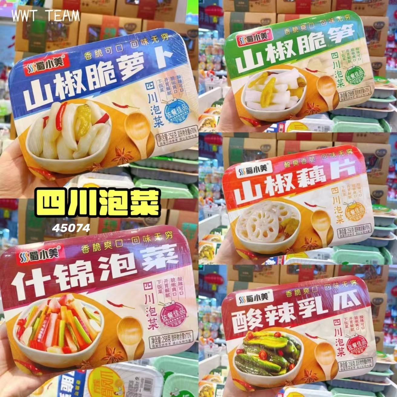 | 口味2 | 山椒脆萝卜, 山椒脆笋, 什锦泡菜, 酸辣乳瓜, 山椒藕片 |