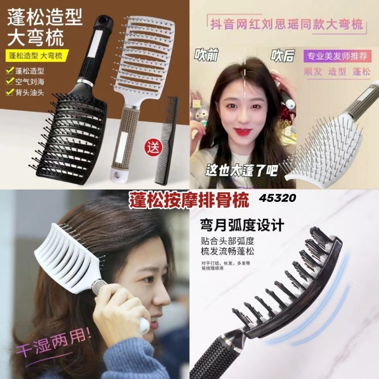 排骨梳自身带了一个弧度,贴合头皮👍,不用费劲的用卷发棒找弧度啦〰️,防打结‼️防静电‼️