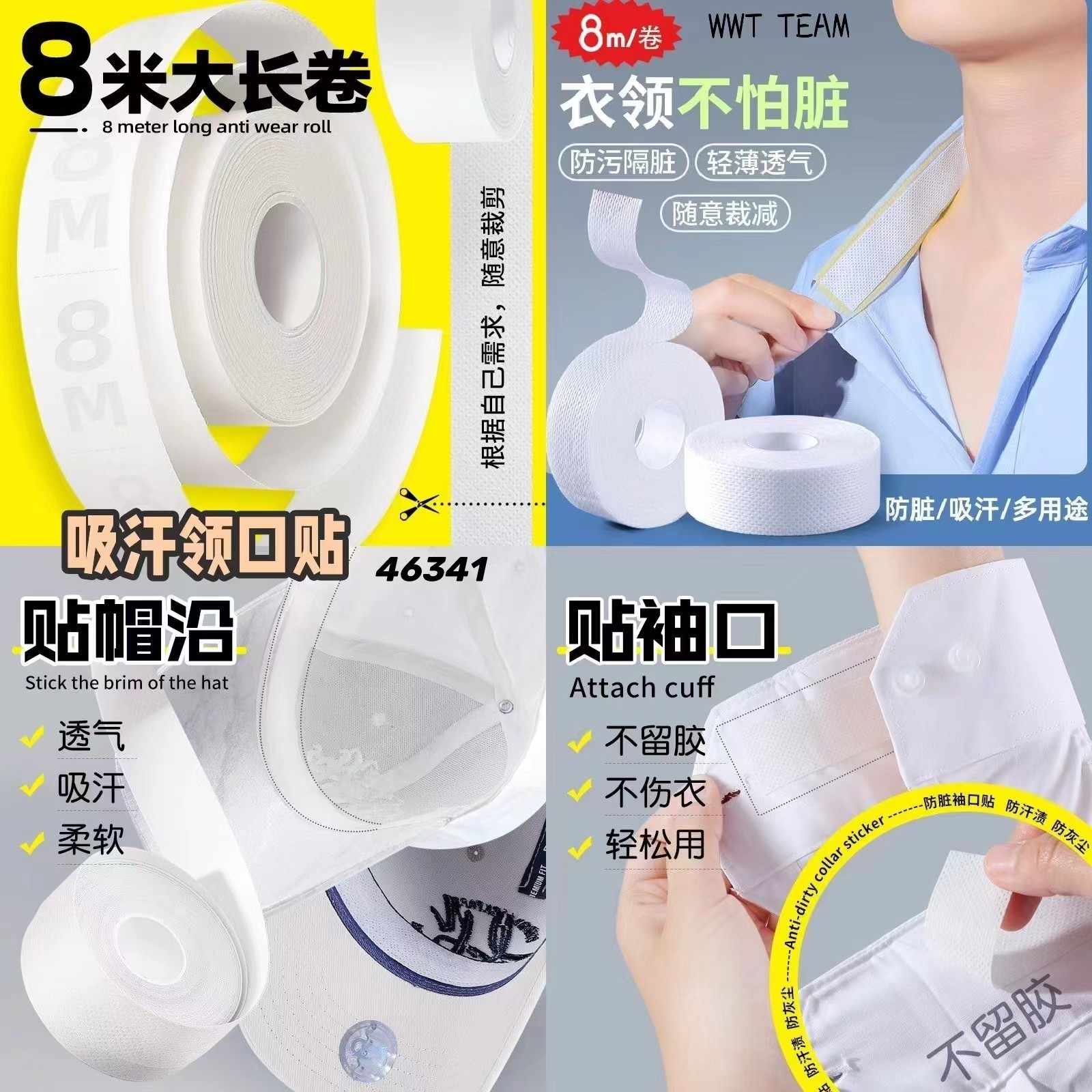 每次穿formal衣服去上班都会流汗领子弄得肮脏还有汗的印迹,汗渍不容易洗干净,贴上这个就能解决烦恼‼️透气不闷热,不留胶,自由裁剪🥰,一卷2.5米x8米